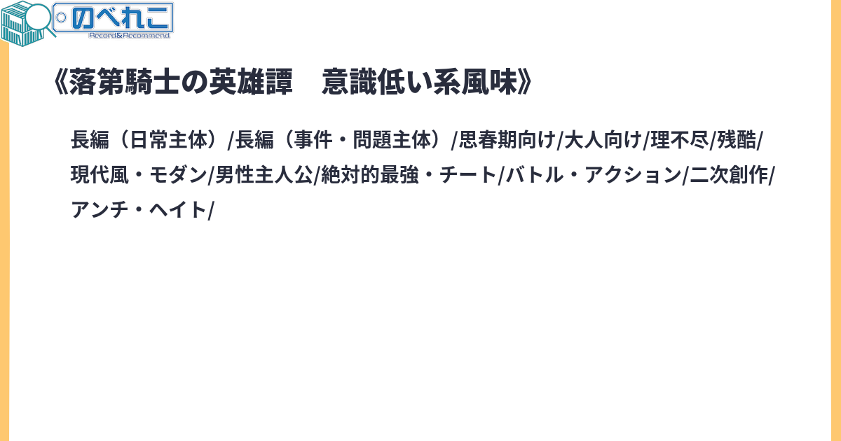2021/11/28:タグ追加>主人公の強さ:駆け出しスタート/ハンディキャップ