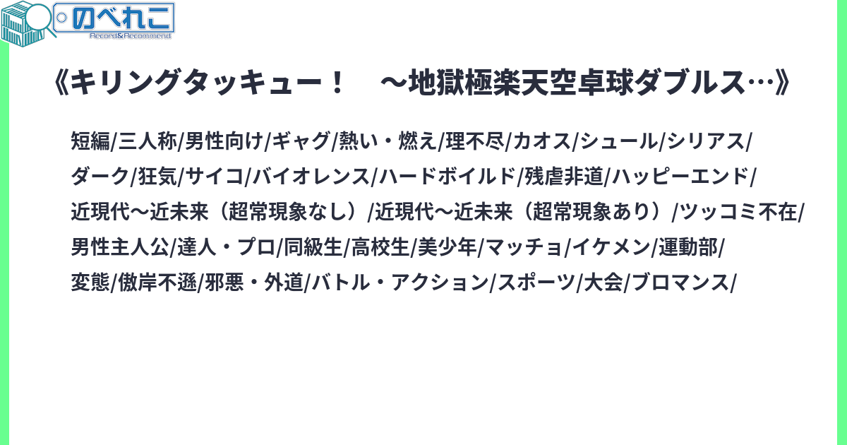 2021/11/28:タグ追加>終わり方:ハッピーエンド/バッドエンド/メリーバッド