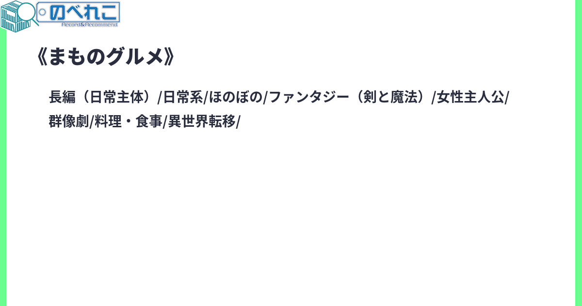 料理好きの女子高生、小早川まもりが目を覚ますと、そこは無数の島が天空に浮かぶ不思議な場所だった! 豹人や獺人などの様々な種族の暮らすこの場所で、まもりは小さな食堂【マモのグルメ】を開店するのだが、魔物を食材とする料理には不思議な力が宿っていて…… 世界を蝕むヤドリギ災害によって発生した〈歪み〉によって滅びに瀕したこの場所で、まもりの料理が世界を救う!! ……かも? 異世界×グルメ×冒険ファンタジー、開幕!!サイトタグ:異世界転移 シリアス ほのぼの 女主人公 人外 群像劇 日常 グルメ