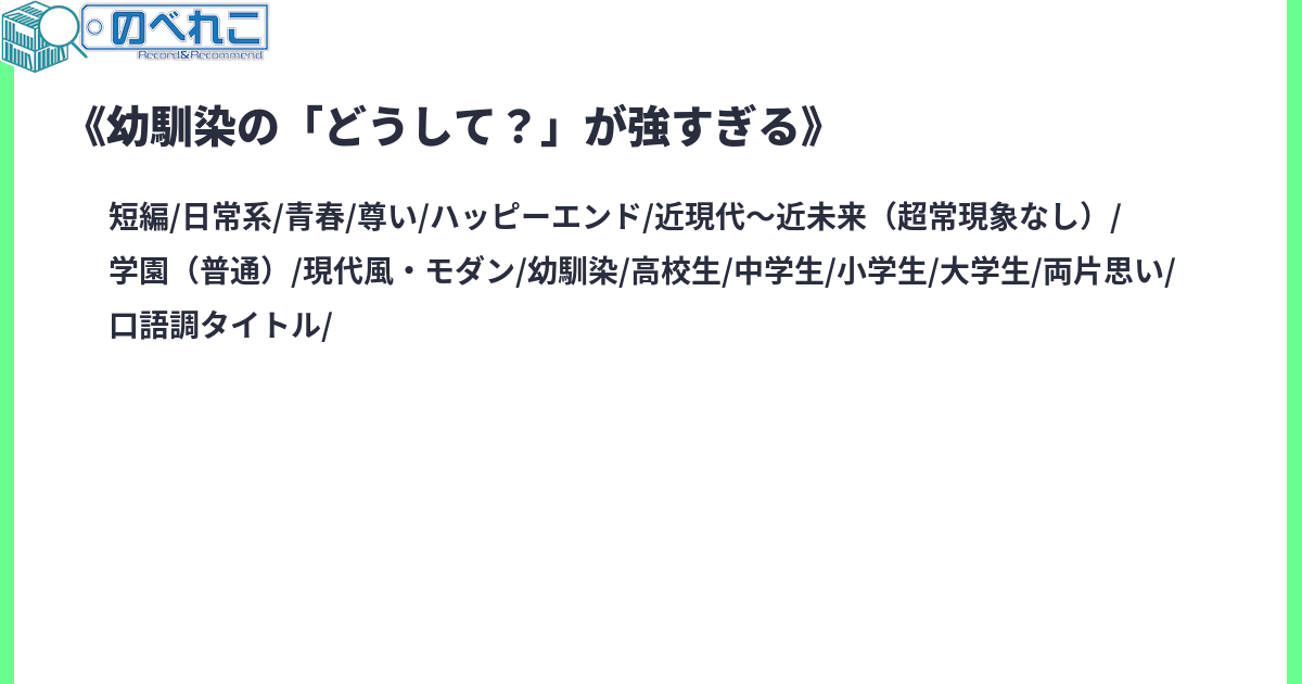 幼馴染の「どうして?」が強すぎるサイトタグ:ラブコメ 幼馴染 恋愛