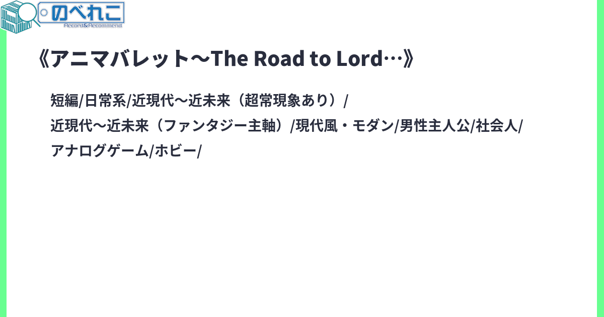 人気カードゲーム『アニマバレット』。《ザ・ワン》と呼ばれ、幻覚と共にカードを操る子供たちの傍には、数え切れないくらいのその他大勢の人々がいた。これはそんな普通の人々の、ちょっとした打ち明け話。サイトタグ:カードゲーム 日常