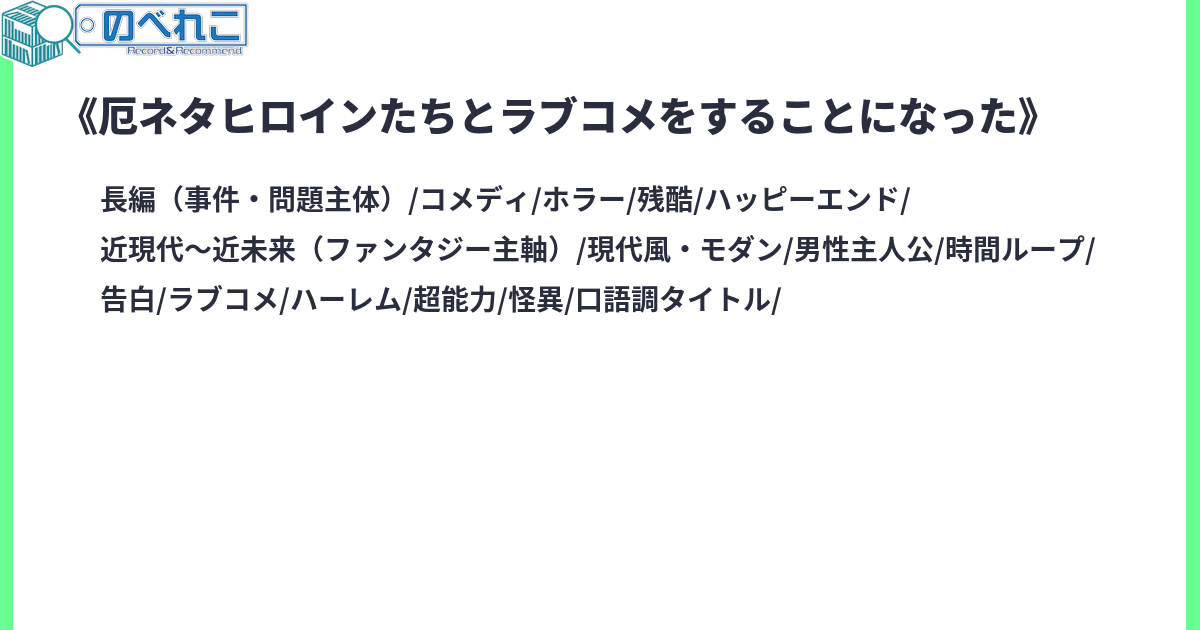「キミが好きだよ。だから殺すね」「あなたが好きです。好きなので洗脳しますね」「俺の死因多すぎるだろ…」異能バトルも伝奇ホラーもある世界で、バッドエンドの元凶になるような厄い美少女に好意を抱かれる――好意全開の金髪巨乳幼馴染み、ややホラーな超能力者の黒髪ロング同級生、彼女たちが引き起こす破滅の未来に巻き込まれる少年。愛が重くて、死の原因になる厄ネタヒロインたちとの邪悪なラブコメが始まった。もちろん最後は世界もヒロインも救う。サイトタグ:現代 恋愛 ラブコメ 異能 伝奇 ヤンデレ 愛が重い 死に戻り ループ 激重感情 現代ファンタジー ハーレム 残酷な描写