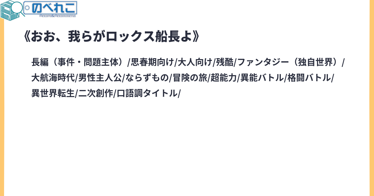 ロックス? そんなキャラクター知らない。でも見た目はモブっぽくない奴だ。そいつが誰だろうと、島から連れ出してくれるなら誰でもよかった。サイトタグ:ONE PIECE 独自設定 オリジナル展開 R-15 オリ主 残酷な描写 転生
