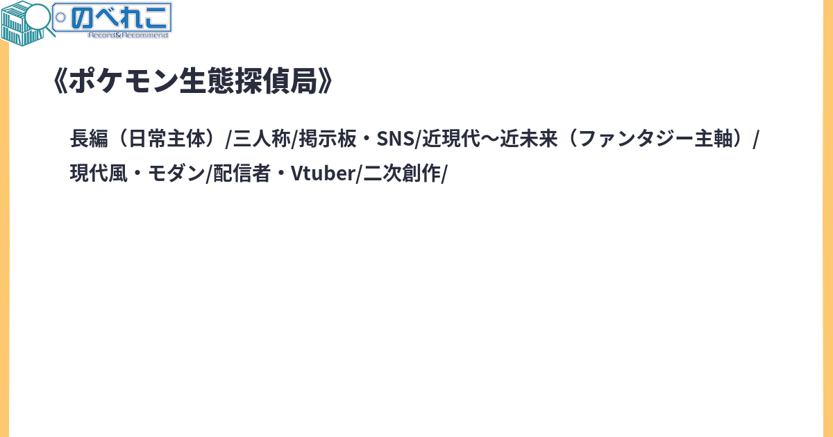 ※挿絵表示を「あり」にしてお読みください。作中の資料写真や模式図は挿絵として挿入しています。ポケモンたちの進化や生態には、公式の図鑑説明や研究だけでは語り尽くせない謎がある。 無名の配信者「ライ考」は、自身のフィールド観察や手持ちポケモンとの生活をもとに、独自の仮説を動画配信や生放送で発表していく。 「ドードリオの三つ首はなぜ必要なのか」 「パラスは本当に“キノコポケモン”と呼べるのか」 「進化とは環境適応か、先鋭化か、それとも更新か」 「文化や人間との関わりがポケモンの進化を形づくるのではないか」 考察の題材は身近なポケモンから、時に伝説や神話にまで及ぶ。配信を終えると、匿名掲示板では雑多な感想や揶揄が飛び交い、SNS上では学識ある研究者や著名トレーナーまでもが議論に参加する。やがて小さな仮説は、ポケモン世界全体の「進化」と「共生」を考える大きなうねりへと発展していく。 本作は《原作準拠》の世界観で展開する、知識系考察配信風ポケモン二次創作小説です。 ポケモン世界に暮らす一人の配信者が、仮説を立て、語り、問いかけ、そして読者=リスナーの反応と共に歩んでいく連載形式の作品となります。 ツイッターで本編の更新予定や本編から漏れた研究noteの断片を公開するので是非フォローをお願いします。https://x.com/PRB_labサイトタグ:ポケットモンスター 原作準拠 考察 研究 実況・配信 SNS形式 掲示板形式 カントー地方 ジョウト地方 シンオウ地方 オリ主 仮説提示 都市伝説 オリ主