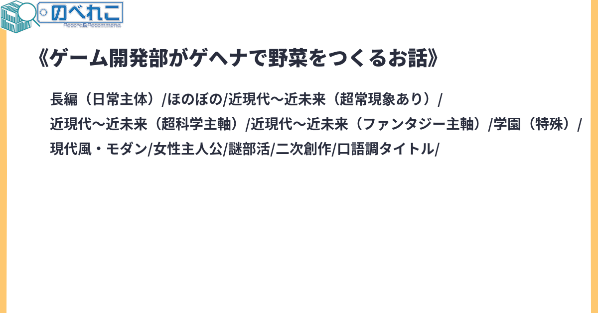 「農業のシミュレーションゲームを作りたい!」モモイの一言で始まったその開発計画。だけどシミュレーションゲームなんて、遊んだことはあっても作った事なんて無い。ましてや農業の知識なんて...それでも諦めきれないモモイ。そこでゲーム開発部は「まずは情報収集と経験から」ということで、ゲヘナ学園の給食部に所属し、そこで畑を管理する牛牧ジュリに助けを求めるのだった。初二次創作です!オリキャラとかオリ主とかは扱いきれる自信が無いので、生徒達(ちょっぴり先生)同士の絡みのみです!このお話はpixivにも投稿されています。サイトタグ:ブルーアーカイブ 農業 ほのぼの ゲーム開発部 給食部 独自解釈 エンジニア部 女先生 空崎ヒナ 早瀬ユウカ 調月リオ ハッピーエンド