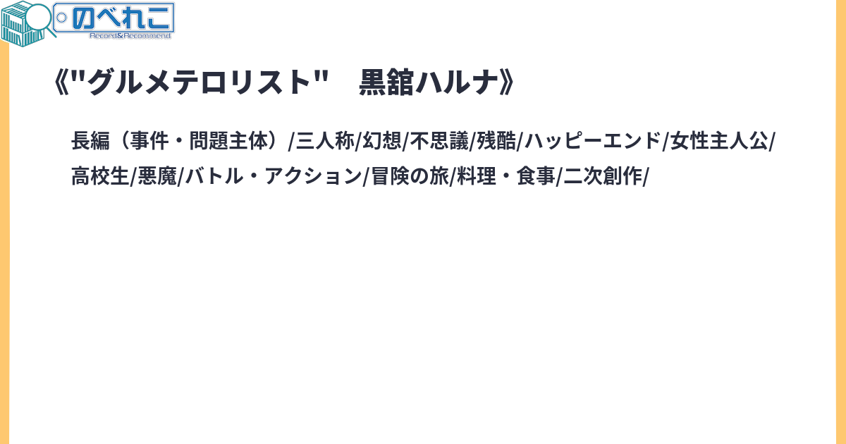 世はグルメ時代、未開の味を探求する時代。そんな時代に現れた一人の美食屋、”グルメテロリスト”黒舘ハルナ。幻のスープ「センチュリースープ」の噂を聞き付けたハルナはとある目的のもとアイスヘルへと向かうのだった……2024/05/04 匿名投稿を解除&一旦完結匿名投稿時の作者「ユニアリにブルアカも参戦して」サイトタグ:トリコ トリコ ブルーアーカイブ 黒舘ハルナ 独自設定 残酷な描写 クロスオーバー