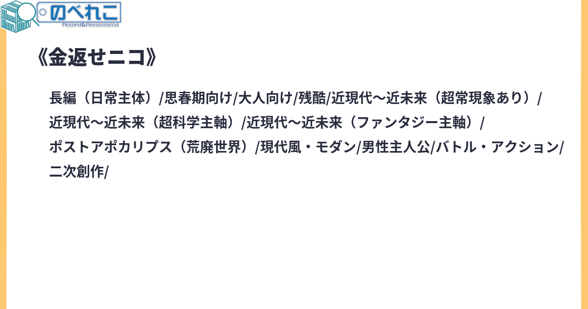 多くの人間たちから借金を踏み倒す(ネット情報)伝説の借金王ニコ・デマラ。そんなニコから死ぬ気で金を取りたてにいく男カルロ。これは二人のしょうもない伝説が、互いの意地を掛けて繰り広げる地上最底のバトルである。※続きは書けたら書きます!サイトタグ:ゼンレスゾーンゼロ 男主人公 金返せ ニコ出てこい ニコは何処だ ヒロイン(借金王):ニコ R-15 オリ主 残酷な描写