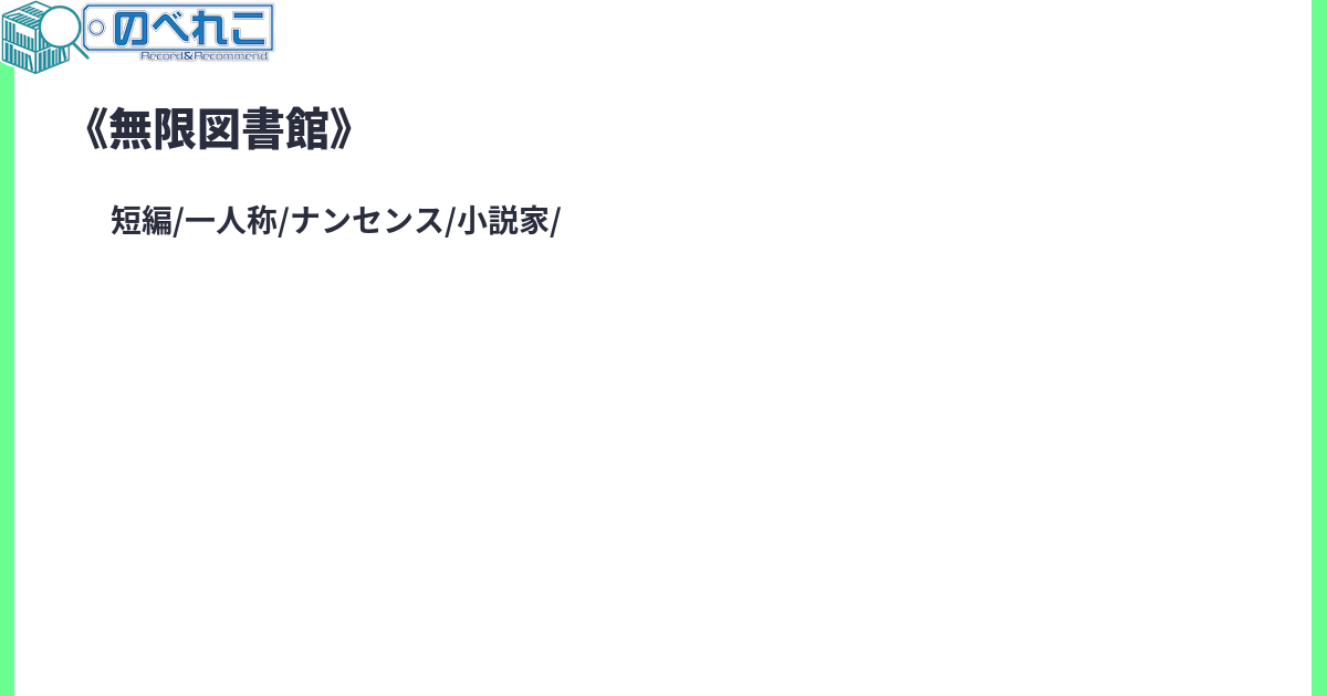 六角形の部屋が無限に連なる「無限図書館」。そこには、あらゆる文字列が組み合わされた無限の本が収められている。作家の私は、まだ誰も書いていない物語を探しにここを訪れた――が、司書は言う。「まだ誰も書いていない本などありません」と。サイトタグ:短篇 ナンセンス 会話劇 メタフィクション 図書館 司書 作家 第8回こむら川小説大賞