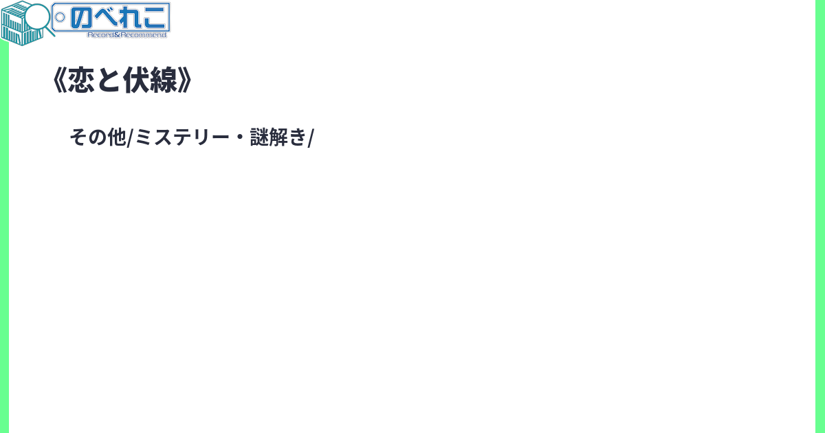 春休みに東京から地元の村に戻ってきた僕を待っていたのは幼なじみの浜宮鈴夢(はまみやれむ)だった。家も隣同士だったというのに、僕は彼女の顔に見覚えが無いどころか、名前も忘れていた。そもそも、僕の頭の中からこの村で過ごした記憶がかなり薄れている。そんな心に少し澱が貯まるような気持ちを持ちながらも、僕は春休み中、鈴夢と楽しい日々を過ごした。ある日のこと、僕は夢で何度も見る巫女姿の女性とばったり出会う。サイトタグ:ミステリー ホラー 夢 幼なじみ