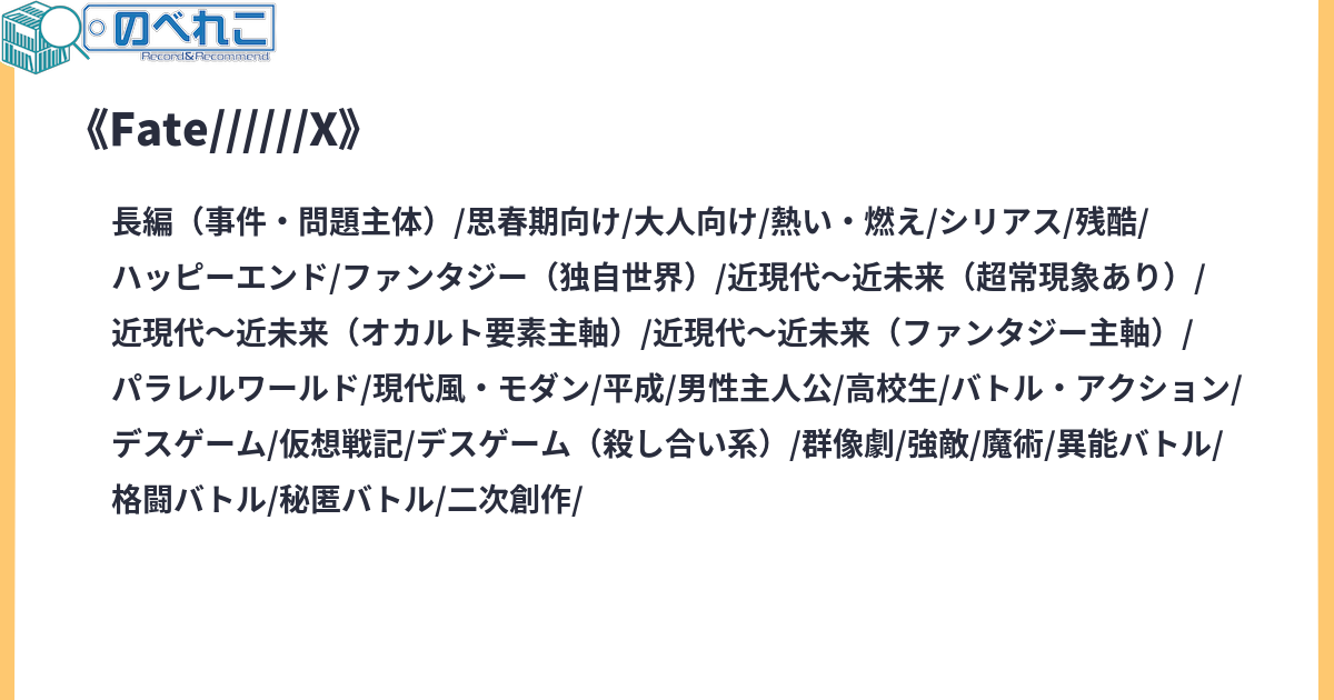 二〇〇四年。極東の地方都市——『冬木市』に住む主人公は、人類史に名を刻まれた英霊『セイバー』と共に、万能の願望器を巡る戦い『聖杯戦争』に挑むこととなる。立ち塞がるは六人の魔術師と六騎の英霊。——汝、願いを叶えたければ、最優を以て力を示せ。平日 二十時ごろ更新サイトタグ:Fate/ 独自解釈 独自設定 原作キャラ死亡 原作改変 原作死亡キャラ生存 Fate/staynight Fate/Zero Fate/EXTRA Fate TYPE-MOON FGO 架空戦記 ゼクノヴァ R-15 オリ主 残酷な描写