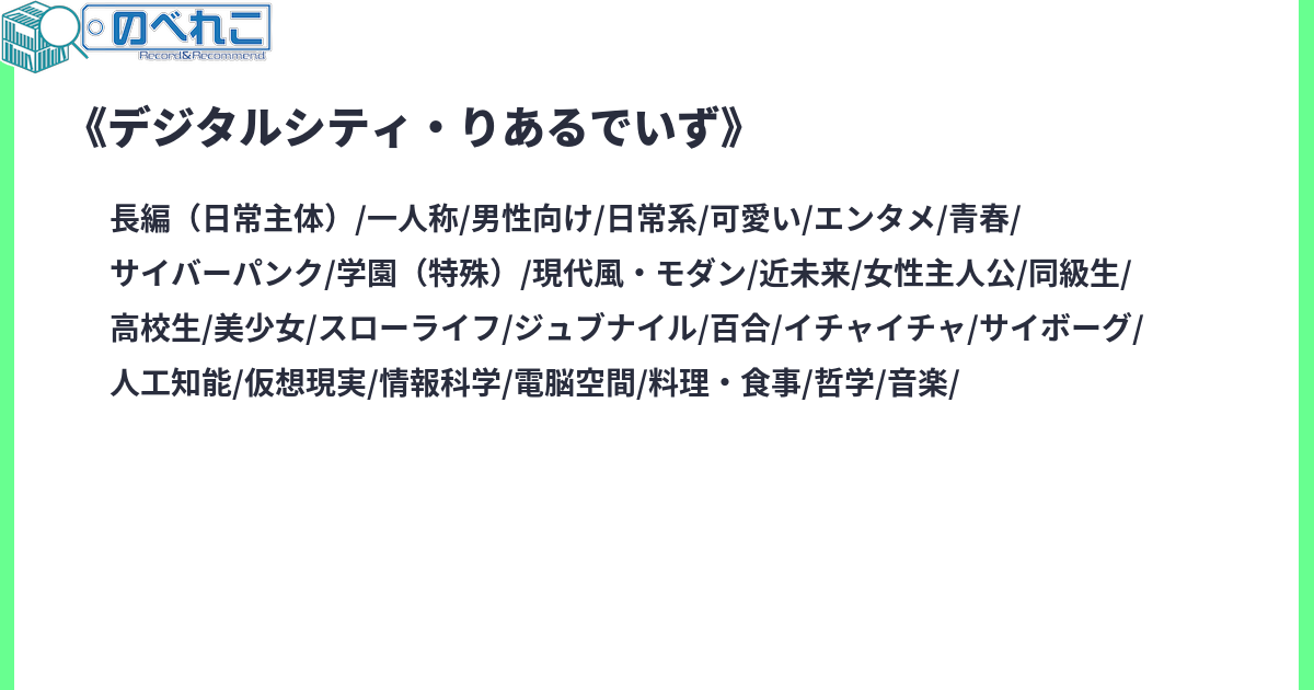 脳をネットに接続する〈ブレインネット〉やサイボーグ化が普及した近未来の東京。仮想空間のハイスクールに通う女子高生・出角ゆかりはある日、同級生の涼風うさぎと現実世界で偶然出会う。 意気投合したふたりと、さらに2人の同級生・千葉みふゆ、藤田しのぶを加え、4人が結成したのは「リアルを楽しく満喫する」活動、その名もリア活部!個性豊かな女子高生4人が織りなす、新感覚・サイバネ青春SF女子高生仮想空間スライスオブライフ!――ヒトの脳さえネットに繋がる時代で、少女たちは〈リアル〉を探す。Exec() ……単話完結型エピソードです。お好きな順番でお読みください。Arc() ……複数話にまたがる、連続型エピソードです。2025/12/1 第二部開幕!サイトタグ:サイバーパンク 日常系 女子高生 仮想空間 近未来 SF 百合 きらら系