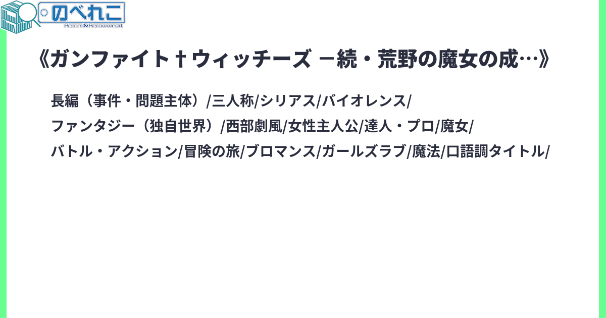 無法の魔女が跋扈する大開拓時代――百万ドルの賞金首にして伝説的魔女【有罪リリィ】は腹心の裏切りで命を落とす。悪魔の助力で復活するも、代償に魔力を失った!「…それじゃ、ここから始まるというわけ」「そうだ! 地獄帰りの復讐劇が―」「平和で穏やかな充実余生が!」これ幸いと隠居に走るリリィ。しかし、運命はそれを許さない。心優しき少女との出逢いが、リリィを再び決闘の荒野へ呼び戻す…!使える武器は『ただの銃』と『おまじない』。かつての古巣、最凶の無法者集団を相手に〈成れの果て〉の逆襲が始まる! サイトタグ:女性主人公 銃と魔法 魔女 バトル もふもふ 西部劇 ガールズブロマンス カクヨムオンリー